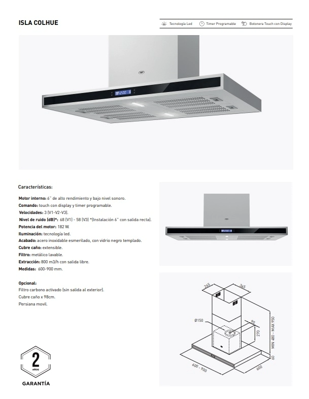 • Comando: touch con display y timer programable.