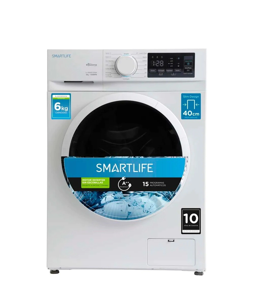 El nuevo lavarropas Smartlife Slim de 6 kg combina rendimiento y ahorro de espacio en un diseño compacto de tan sólo 40 cm de profundidad. Su motor inverter A++ asegura bajo consumo eléctrico y máxima durabilidad. Con 1000 RPM y 15 programas, ofrece lavados profundos, centrifugado rápido y funciones avanzadas como lavado a vapor, cuidado de bebé y limpieza interna del tambor. Un lavarropas pensado para hogares contemporáneos que buscan eficiencia, tecnología y practicidad en el día a día.