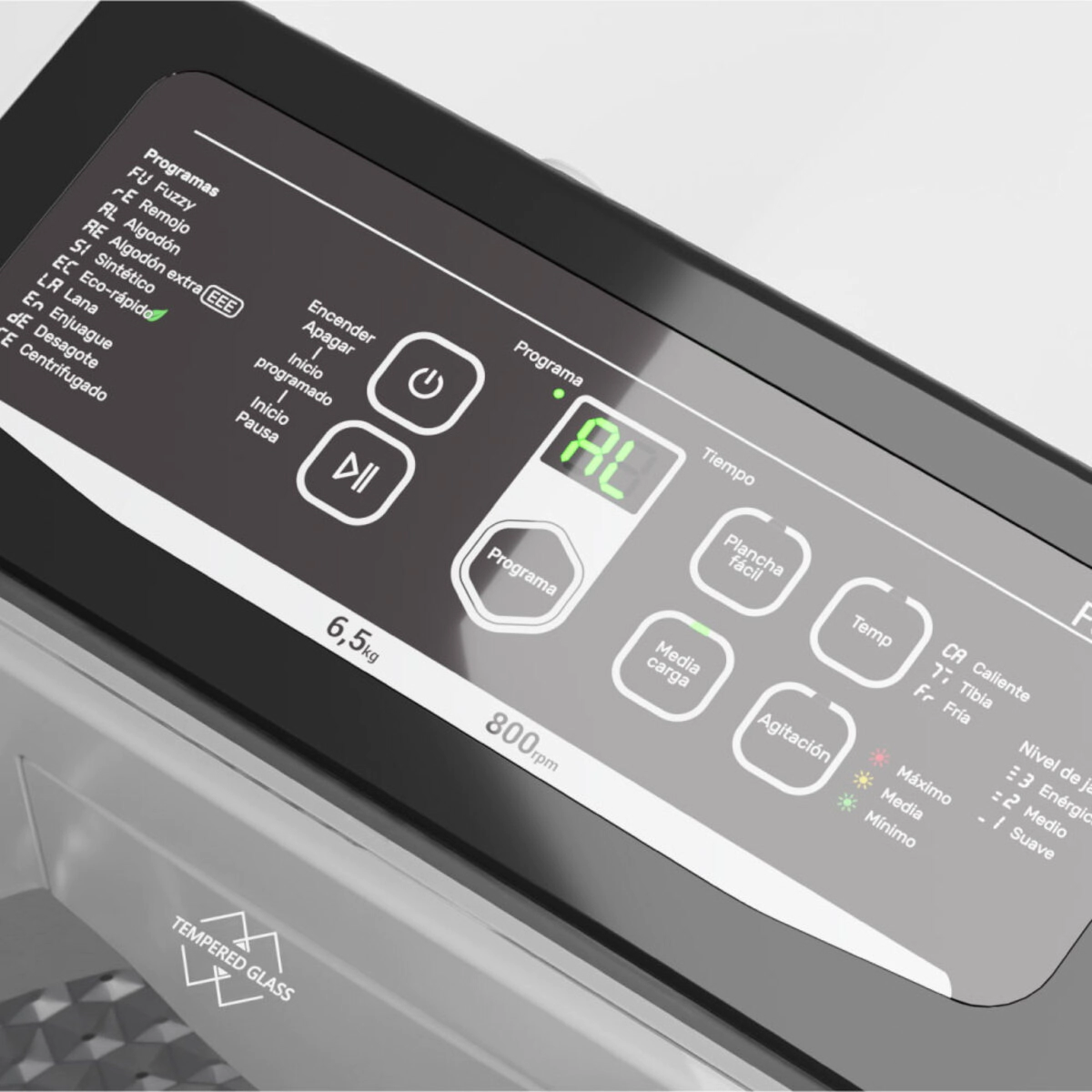 • Tecnología Fuzzy Logic: Ajusta automáticamente la cantidad de agua y jabón según la carga de ropa.