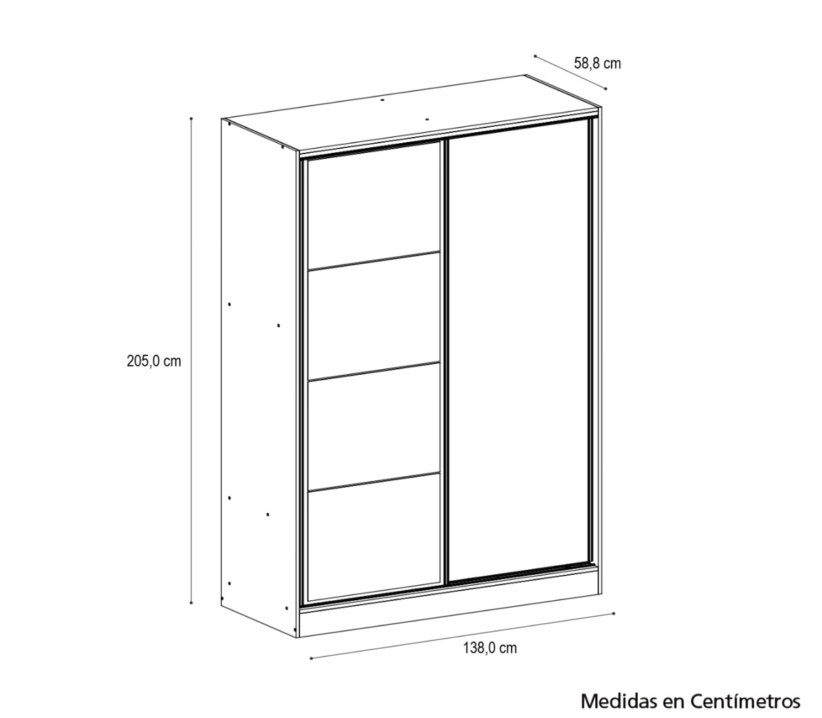 Dimensiones 205 cm alto x 138 cm ancho x 58.8 cm largo