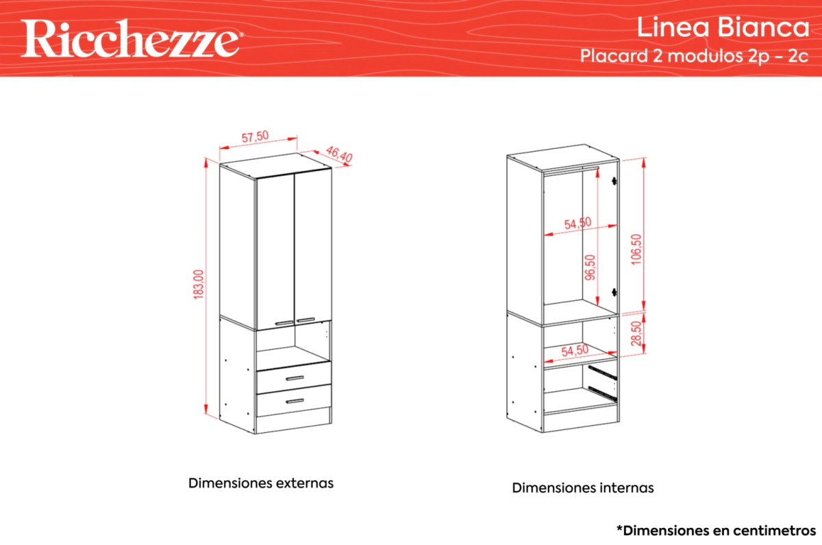 • Placard 2 Módulos 2 Puertas 2 Cajones.