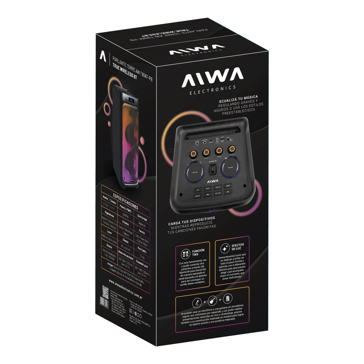 Efectos de luz que van a llamar la atención de todos tus amigos. Llevá con vos esta torre y serás el alma de la fiesta. Prendé el karaoke y animá cualquier celebración.