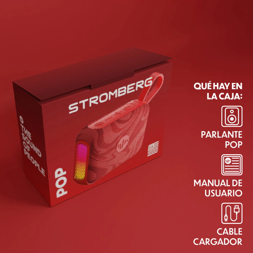 • Tecnología Stromberg Connect: Permite vincularlo inalámbricamente con otro parlante Pop para sonido estéreo amplificado.